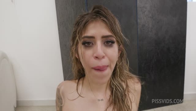 5on1 WET DAP! Busty Larisa Leite gets a mouthful of piss and anal destruction with double anal by five black cocks