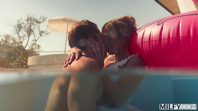 Curvy Mature Syren Rides His Young Cock Poolside